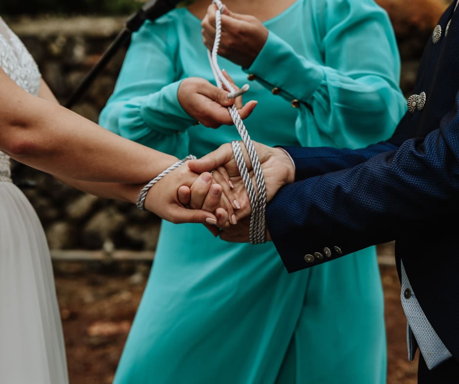 An ancient Scottish and Celtic marriage custom that’s both beautiful and legally recognized, during which the couple literally have their hands tied together with tartan, ribbons, or braids during their ceremony.  The choice of braid, ribbon or cord can be used to represent shared values, hopes or heritage and when combined with saying wedding vows, this ritual is a meaningful way to demonstrate the binding of two lives, families, and futures together.